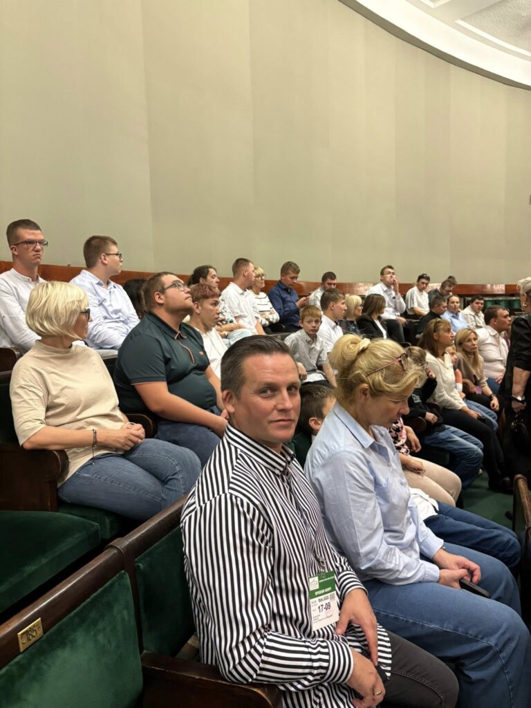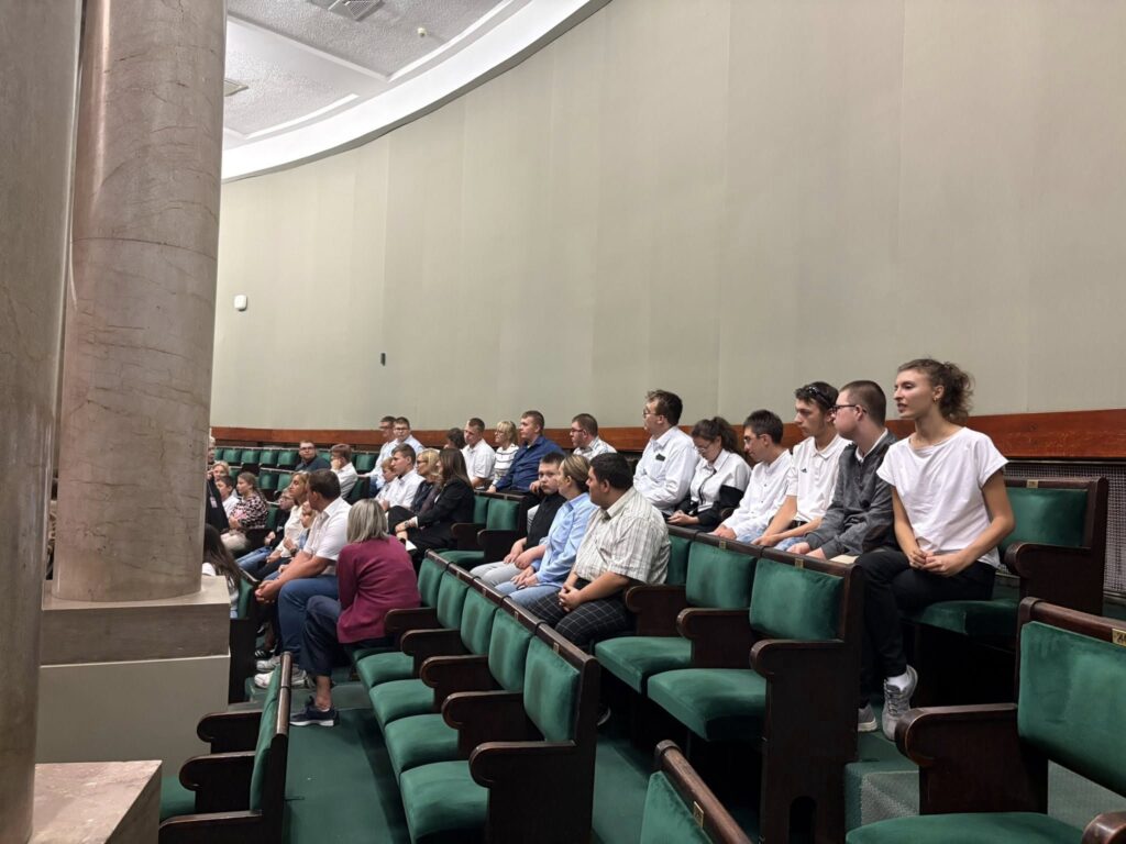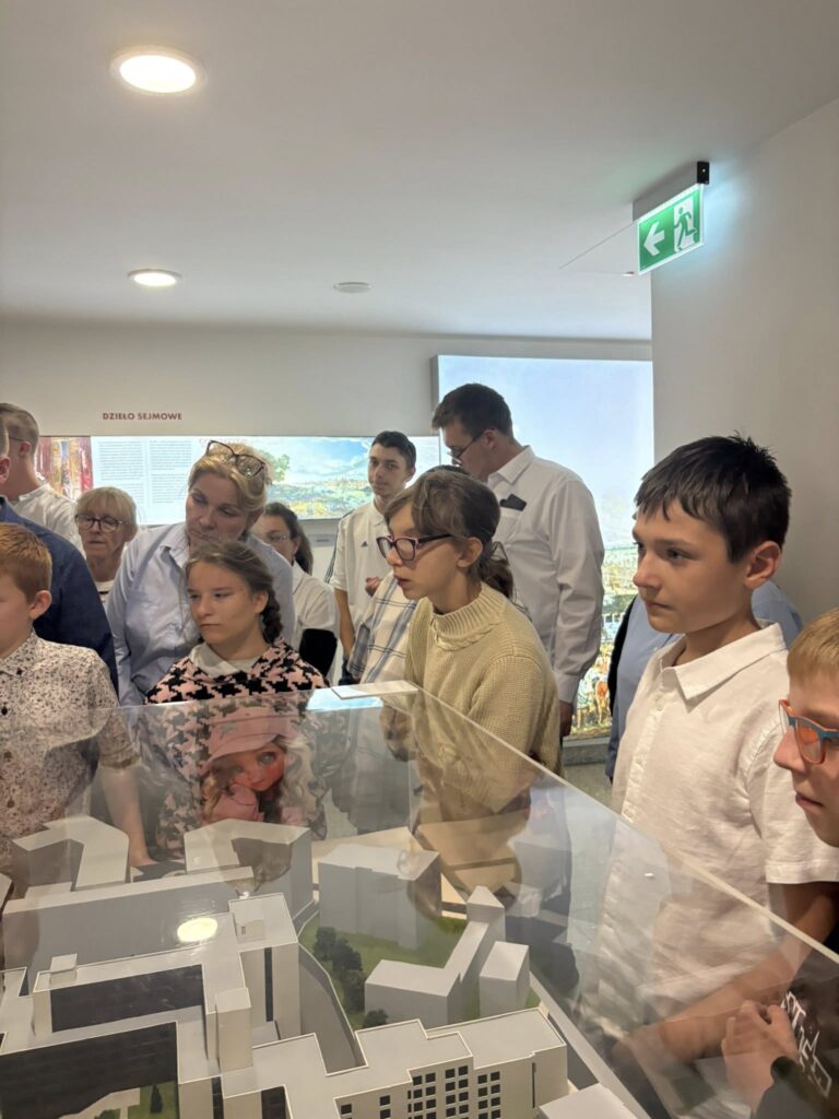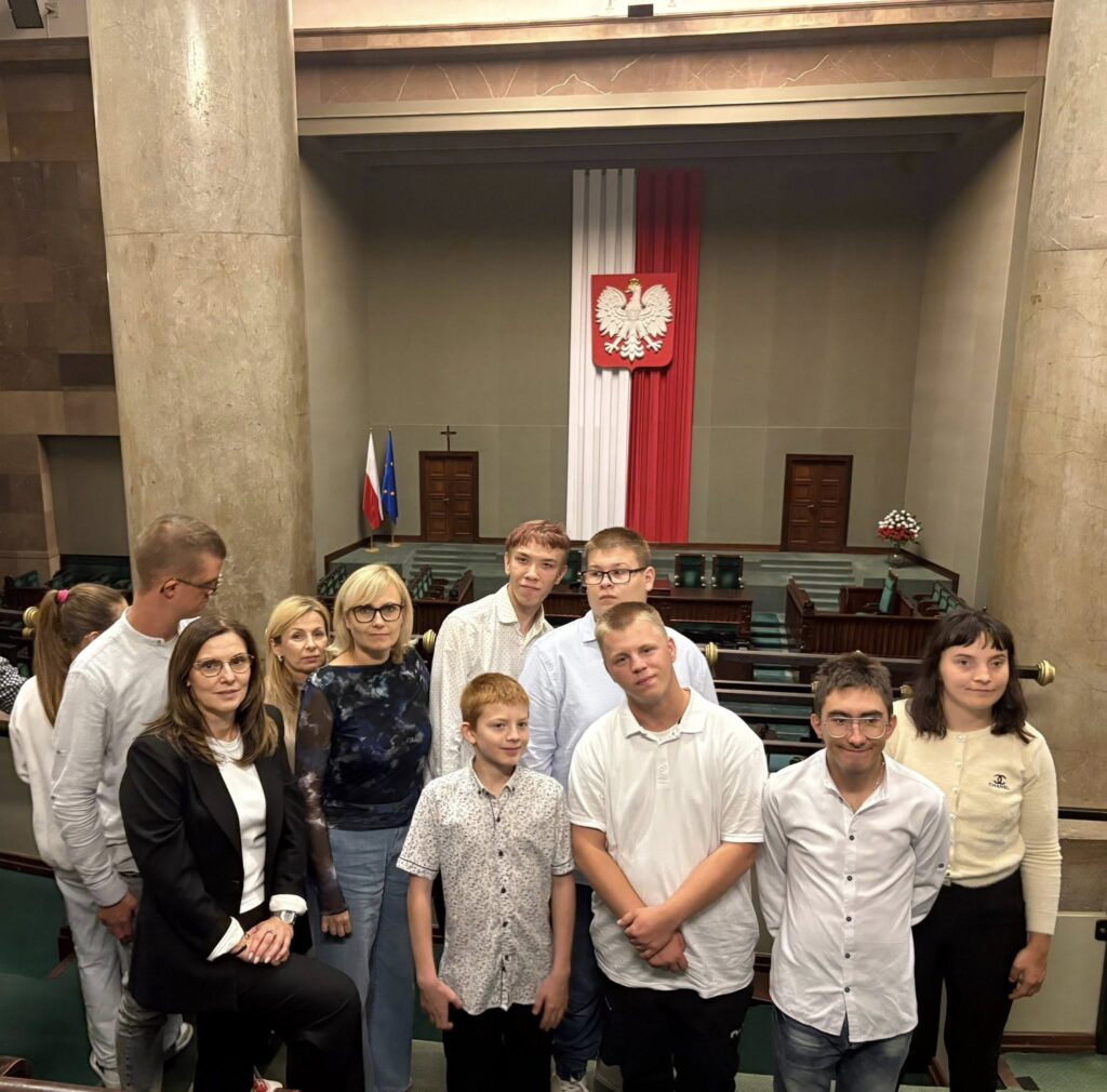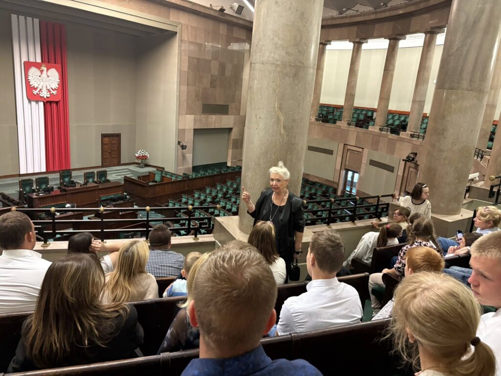 Drugim bardzo ciekawym punktem programu była wizyta w Sejmie Rzeczypospolitej Polskiej. Uczestnicy wyjazdu mieli okazję poznać krótką historię rządów parlamentarnych w naszym kraju. Obejrzeli makietę budynków parlamentu i wystawę poświęconą historii tego miejsca. Najciekawsza jednak była wizyta w sali obrad sejmu, gdzie uczniowie wysłuchali ciekawej prelekcji o obradach, zwyczajach związanych z ich ceremoniałem oraz wielu sejmowych ciekawostek. Wizyta w sejmie zakończyła się pamiątkowym zdjęciem na marmurowych schodach oraz spacerem po sejmowych kuluarach. Każdy uczestnik wyjazdu otrzymał również pamiątkowe grafiki, notesy i ołówki z logotypem Sejmu RP. Odwiedziny w sejmie to ważna część wychowania obywatelskiego, które jest jednym z priorytetów MEN w bieżącym roku szkolnym.