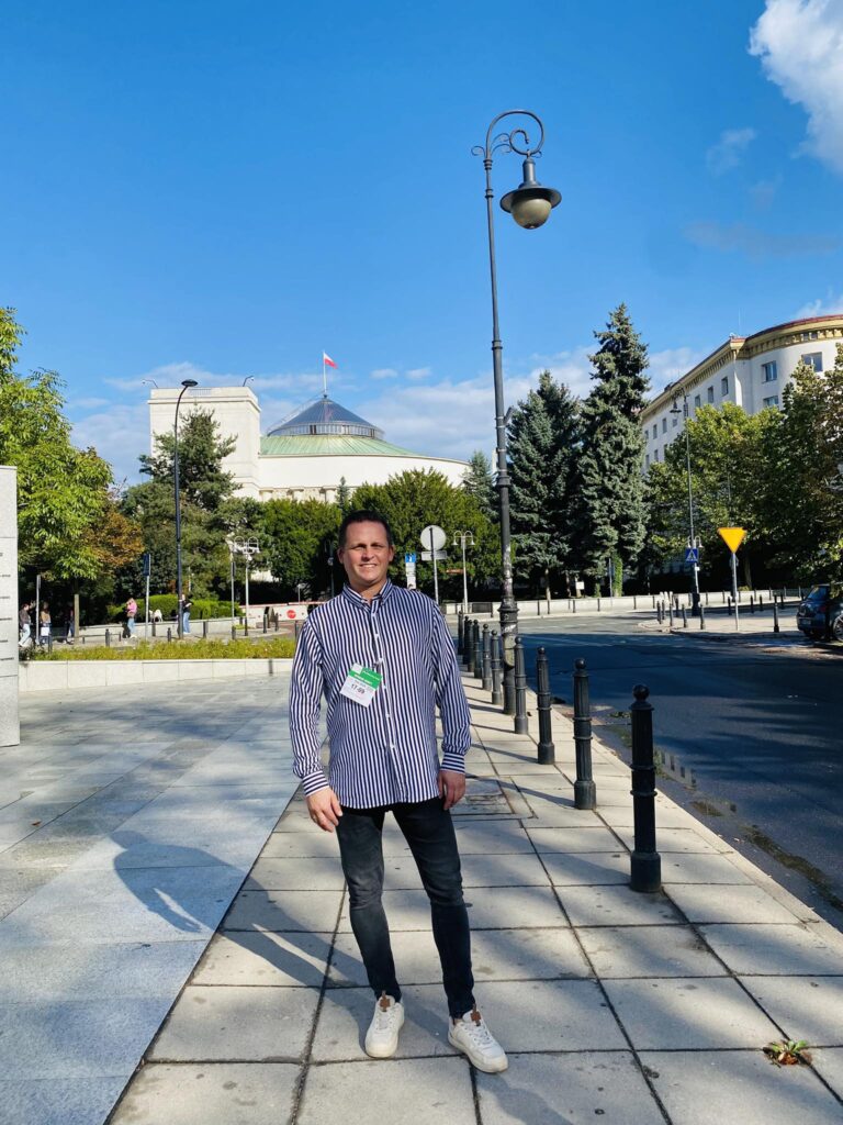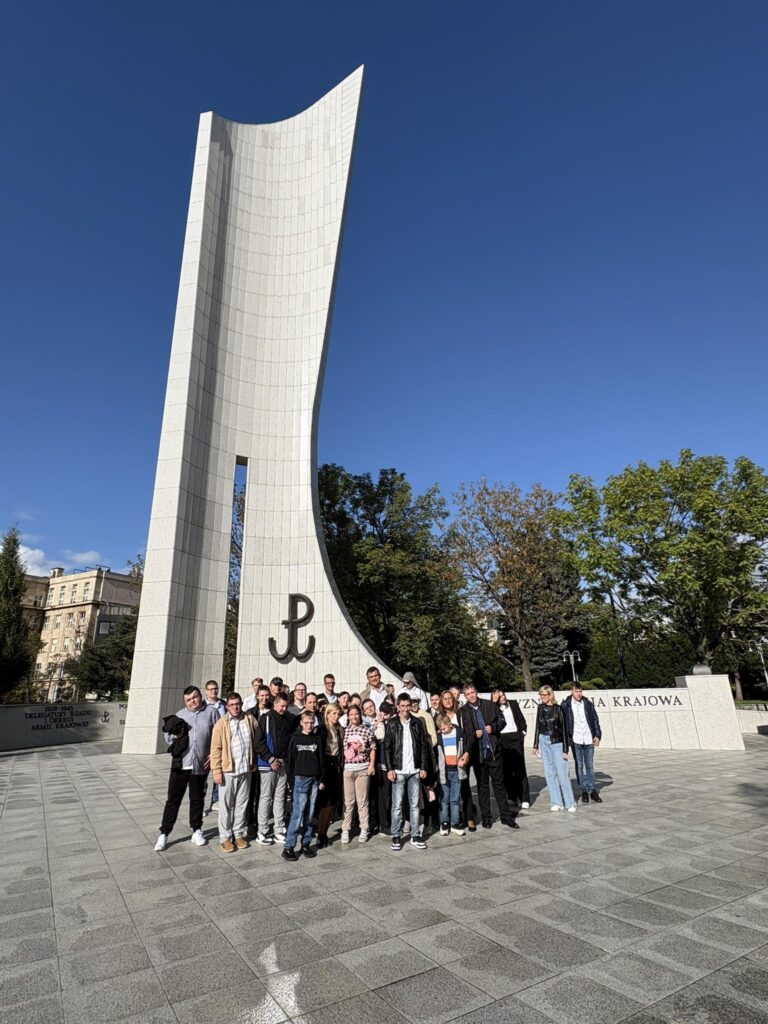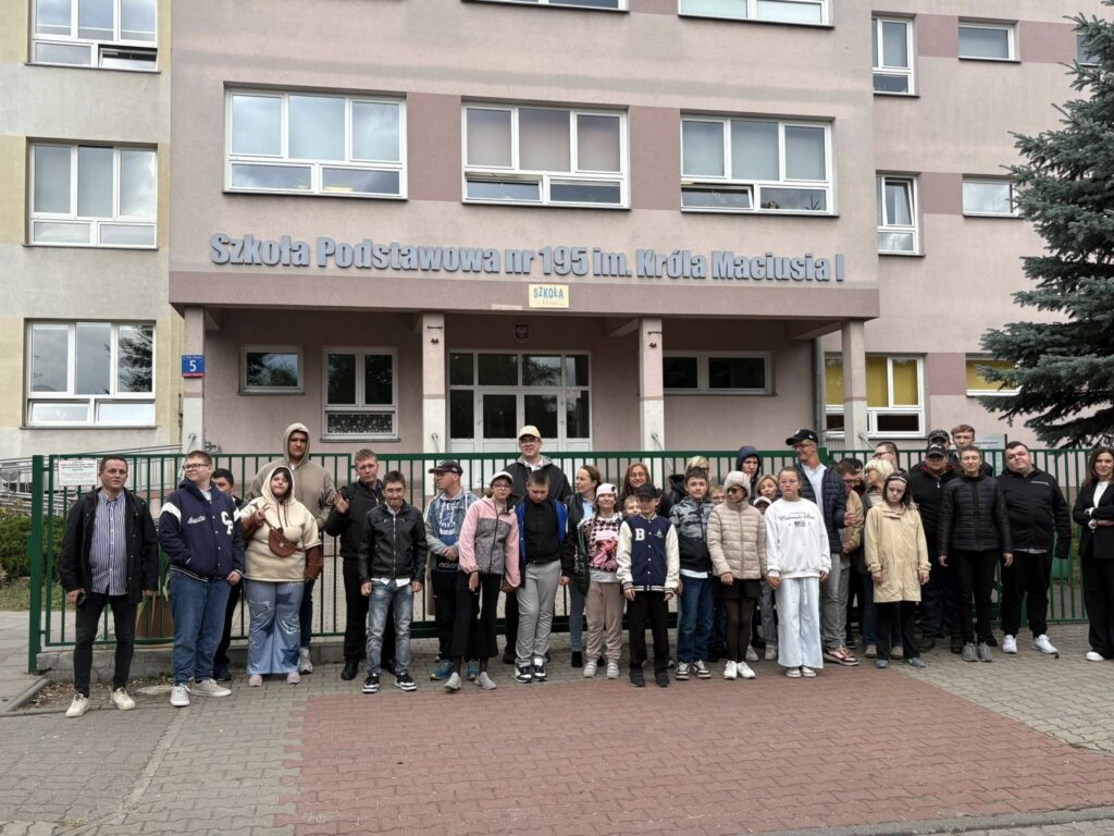 17 września 2025 r. Stowarzyszenie INNI zorganizowało wspaniałą wycieczkę do Warszawy. Była to druga taka wyprawa w ramach projektu „Nasz czas” dofinansowanego przez Miasto Brzeziny. W wycieczce wzięli udział chętni uczniowie szkół oraz absolwenci PZSiPO, którzy należą do stowarzyszenia. W programie wyjazdu znalazła się wizyta w Szkole Podstawowej nr 195 im. Króla Maciusia I w Warszawie, gdzie zostaliśmy serdecznie przyjęci przez koło wolontariatu. Uczniowie pokazali nam sztandar szkoły, kącik Patrona, pamiątki zachowane z uroczystości nadania imienia szkole oraz szkolne kroniki. Czytali fragmenty autorskich periodyków tworzonych przez uczniów szkoły na temat Janusza Korczaka i jego dzieł. Wizyta zakończyła się pamiątkowymi zdjęciami wykonanymi pod muralem zdobiącym ścianę SP nr 195 w Warszawie, na którym znajduje się wizerunek Korczaka i Stefanii Wilczyńskiej. Ciekawym przystankiem w trakcie wycieczki były odwiedziny przy muralu Króla Maciusia I zdobiącym ścianę pobliskiej biblioteki publicznej. Ta część wycieczki do Warszawy wpisała się w obchodzony w szkole Tydzień KORCZAKOWSKI, który przygotowuje społeczność uczniowską do nadania imienia szkole podstawowej.